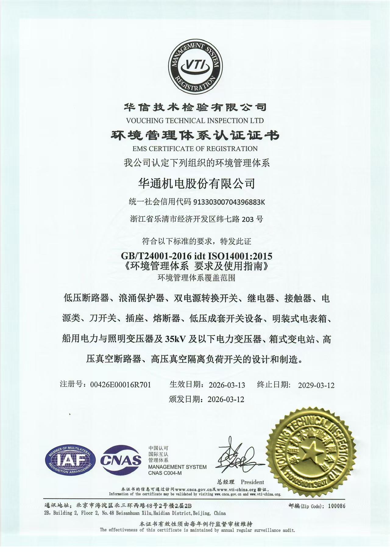 華通機電能源體系證書